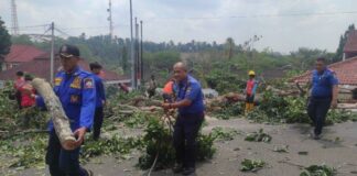 Berpotensi Tumbang, Pemkab Lamsel Menebang Pohon Yang Sudah Tua