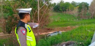 Lampung Tengah, Penacakrawala.com - Gegara mendahului dengan kecepatan tinggi, mobil Mitsubishi Pajero Sport terjun bebas ke jurang.