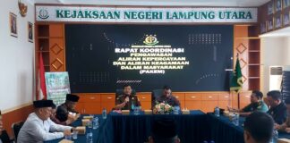 Lampung Utara, Penacakrawala.com - Kejaksaan Negeri Lampung Utara gelar rapat koordinasi dengan perwakilan dari masing-masing Tim Pengawasan Aliran Kepercayaan dan Aliran Kegamaan dalam Masyarakat...