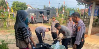Kepolisian Lampung Utara Membagikan Air Bersih Kepada Masyarakat Kab. Lampung Utara