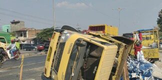 Dihantam Oleh Truck Rem Blong, Satu Truck Bermuatan Kaca Terguling