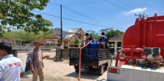Polres dan Damkar Mesuji Bagikan Air Bersih Di Kecamatan Tanjung Raya