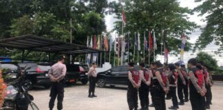 Metro, Penacakrawala.com - Jaga keamanan pemilu, personel Polres Metro, Polda Lampung masih standby di kantor KPU.