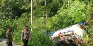 Diduga Rem Blong, Truck Tangki Solar Mengalami Kecelakaan Di Bukit Barisan