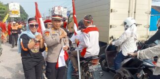Polres Pringsewu Membagikan Ribuan Bendera merah Putih Kepada Pengendra Dijalan