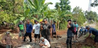 Pringsewu, Penacakrawala.com - Warga Pekon Banyu Urip, kecamatan Banyumas kabupaten Pringsewu berjibaku melakukan gotong royong memperbaiki gorong gorong yang amblas secara swadaya, Jumat (30/6/23).