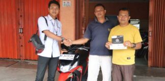 Pringsewu, Penacakrawala.id - Polres Pringsewu memberikan sepeda motor baru warga Kecamatan Sukoharjo yang rusak karena menghadang begal yang melarikan diri.