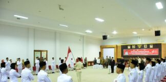 PJ Bupati Tubaba Mengukuhkan Pasukan Pengibar Bendera Merah Putih