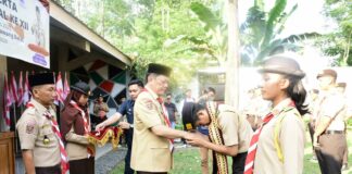 Tulang bawang Barat, Penacakrawala.com - Penjabat Bupati Tulangbawang Barat (Tubaba) Drs. M. Firsada, M.Si melepas secara simbolis kontingen Rainas XII tahun 2023 Kwartir Cabang...
