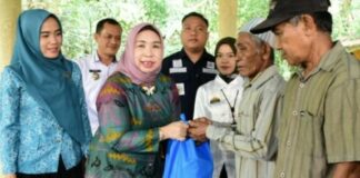 Ketua TP-PKK Tubaba Menyerahkan Paket Sembako Secara Simbolis Kepada Masyarakat