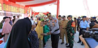 Tulangbawang, Penacakrawala.id - Sebagai bentuk kepedulian dan rasa kemanusiaan, Polres Tulangbawang gelar bakti sosial pembagian sembako.