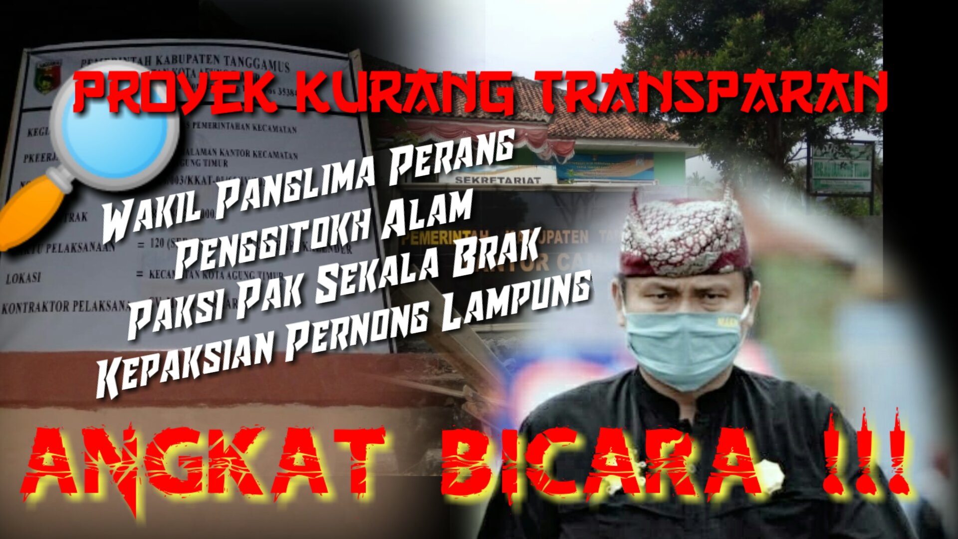 Tanggamus, Penacakrawala.com – Meninindak Lanjuti persoalan proyek siluman di kantor Kecamatan Kotaagung Timur Kabupaten Tanggamus. Mirza YB Tokoh masyarakat adat Kabupaten Tanggamus dan wakil panglima kerajaan adat paksi pak sekala brak kepaksian pernong lampung, sebut pengelolaan kurang Profesional dan Transparan. Rabu, 15 Juli 2020.