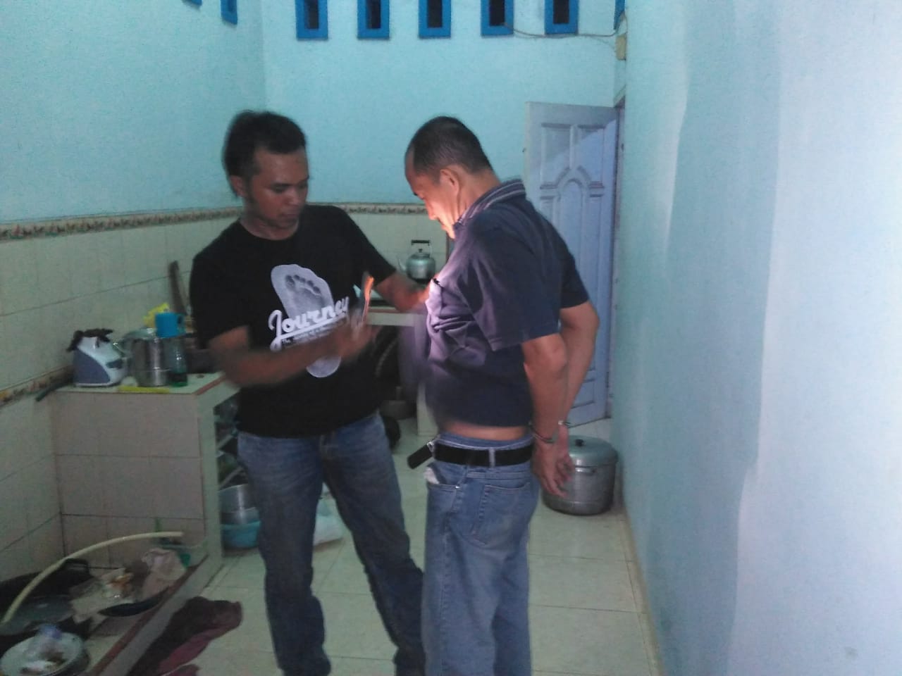 Tersangka berinisial Hen tersebut diamankan di rumahnya, di Kelurahan Yukumjaya, Kecamatan Terbanggi besar, Lampung Tengah, setelah sebelumnya dilakukan pengintaian saat pelaku melakukan transaksi di sekitar Hotel Indah Permai, Kelurahan Yukumjaya.