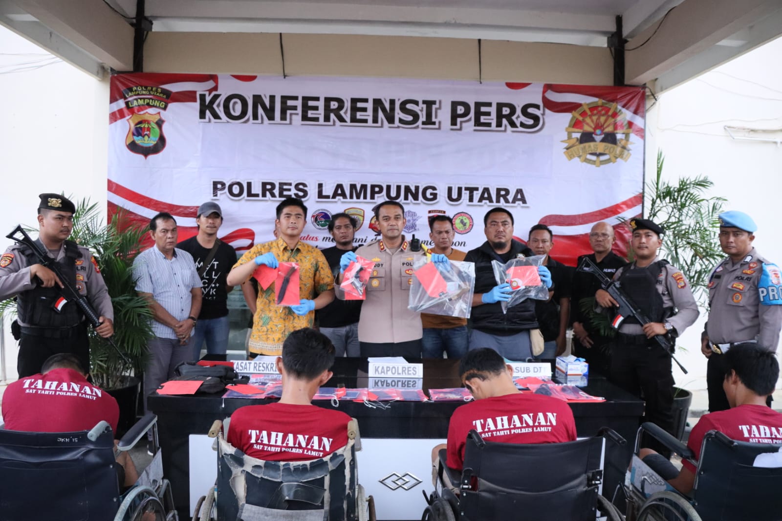 Kapolres Lampung Utara AKBP Teddy Rachesna, S.H., S.I.K., M.Si. menjelaskan mereka ditangkap karena melakukan aksi perampokan di salah satu mes pekerja proyek di Desa Sidomulyo, Kecamatan Bukit Kemuning, Lampung Utara pada tanggal 2 September 2023 lalu.