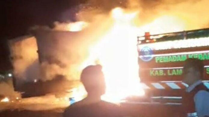 Lampung Selatan, Penacakrawala.com – Satu unit kendaraan truk kebakaran di Jalan lintas Trans Sumatera ( Jalinsum ) Desa Hatta, Kecamatan Bakauheni, Lampung Selatan, Jumat (14/7/2023) sekira pukul 20.30 WIB.