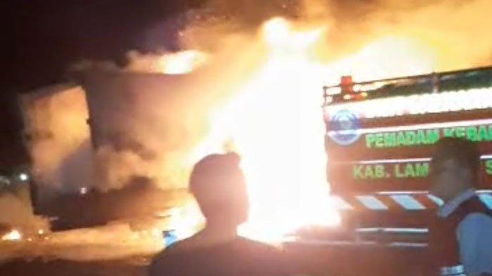 Satu unit truk yang kebakaran di Jalinsum Lampung Selatan itu berisi paket.
