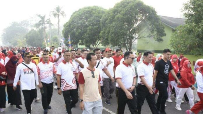 Kegiatan diawali dengan jalan sehat yang dilepas langsung oleh Penjabat (PJ) Bupati Tulang Bawang Barat M Firsada.
