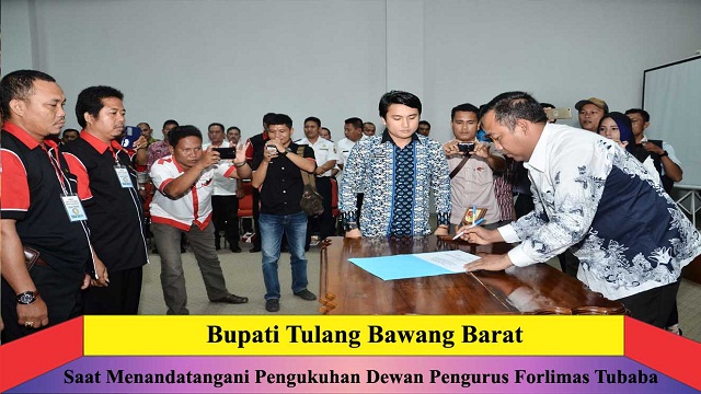 Beranda Homepage Kabupaten Tulang Bawang Barat Umar Ahmad Tandatangani Pengukuhan Dewan Pengurus Forlimas Tubaba