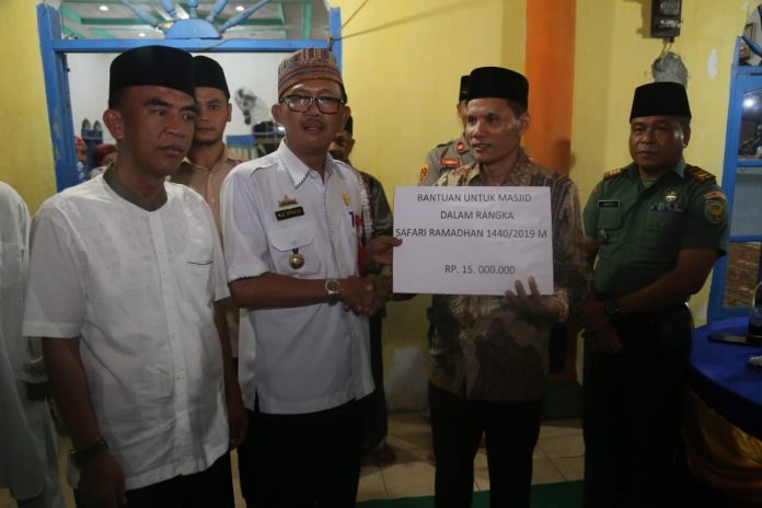 Pesisir Barat, PC – Bupati Pesisir Barat DR.Drs.H.Agus istiqlal,SH.,MH di dampingi oleh Pj.Sekda Ir.N.Lingga Kusuma.MP menghadiri safari ramadhan 1440 H sekaligus melaksanakan sholat terawih bersama di masjid Uswatun Hasanah Sumber agung Kec. Ngambur, Rabu,(15/5/19).
