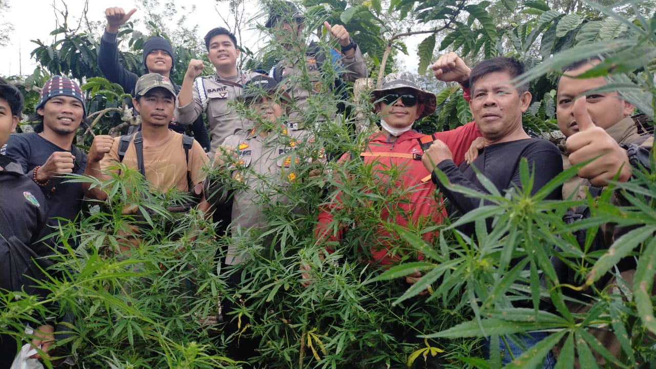 Tim Polres Lahat langsung menuju ke perkebunan kobi tersebut. Saat telusuri bersama warga sekitar, ternyata banyak tanaman ganja siap panen.